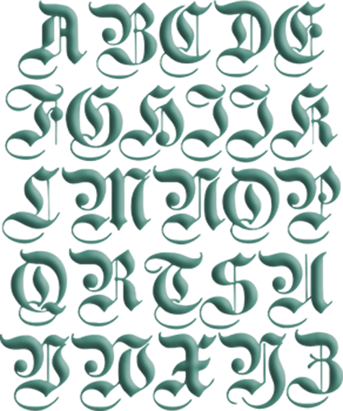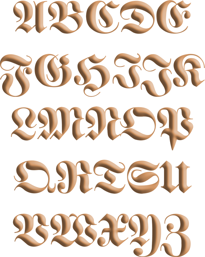 Fein geschwungene Gotik – perfekt für klassische Monogramme, Initialen oder Namen mit Stil. Diese Schrift steht für Eleganz und Zeitlosigkeit.